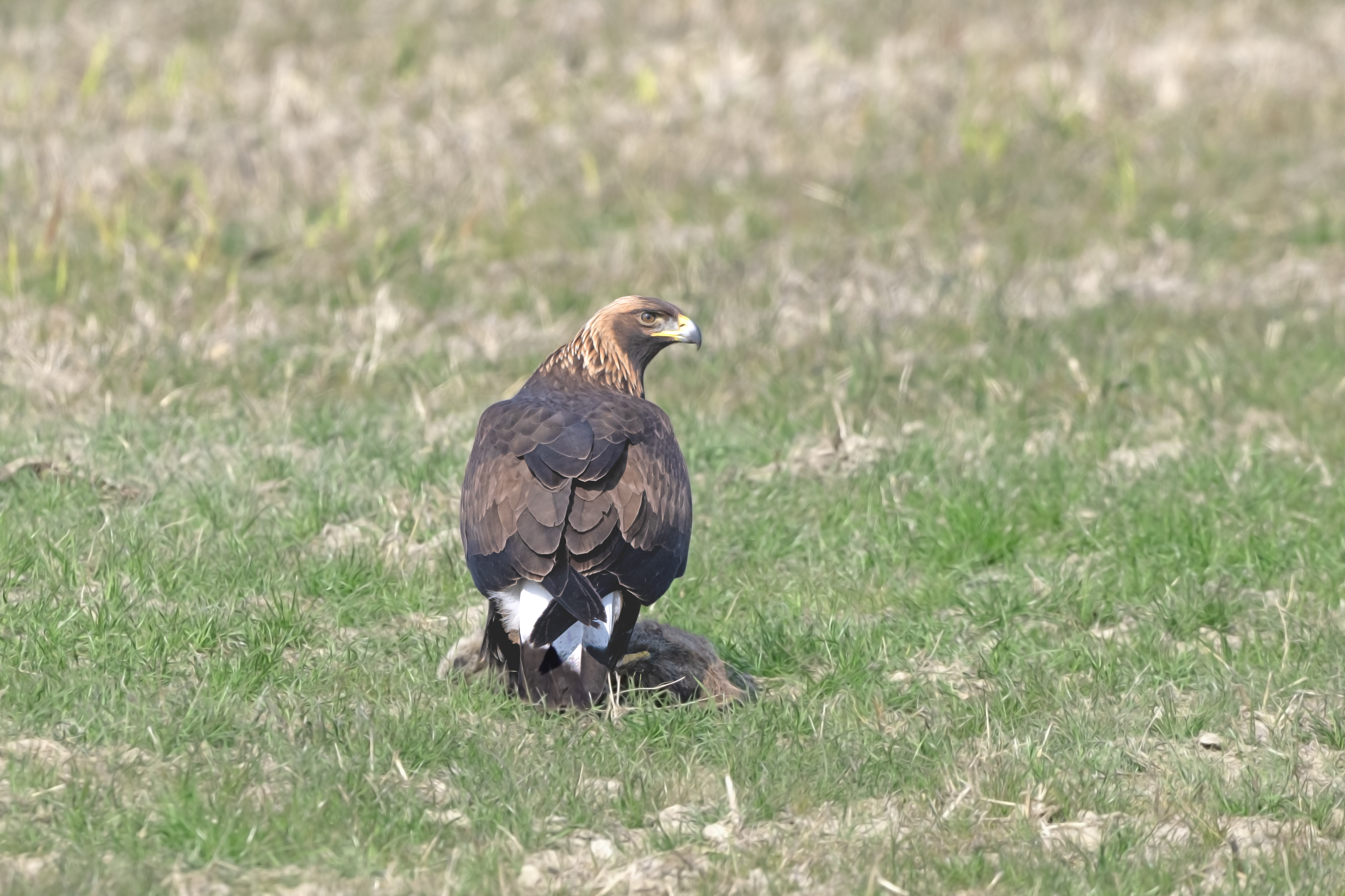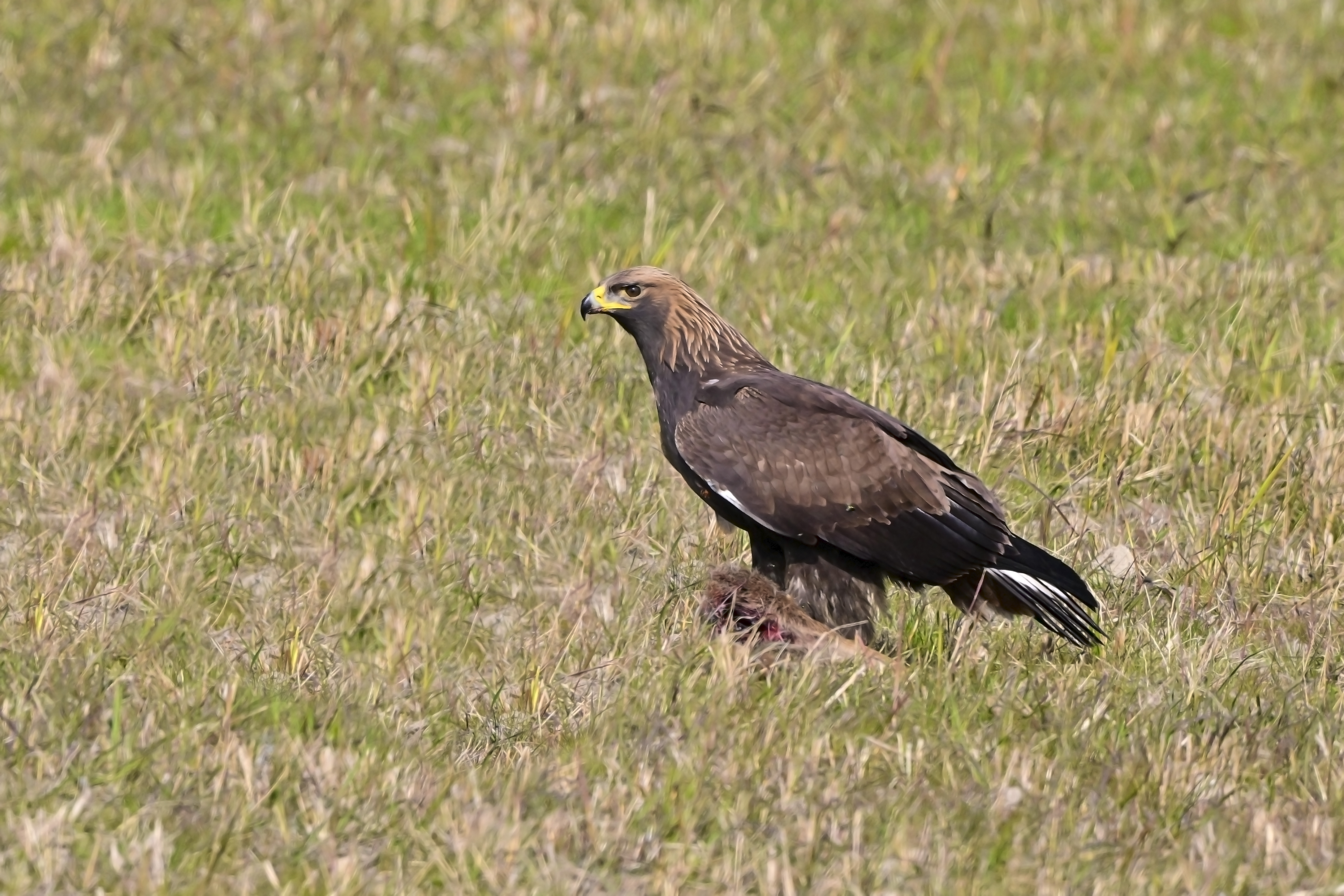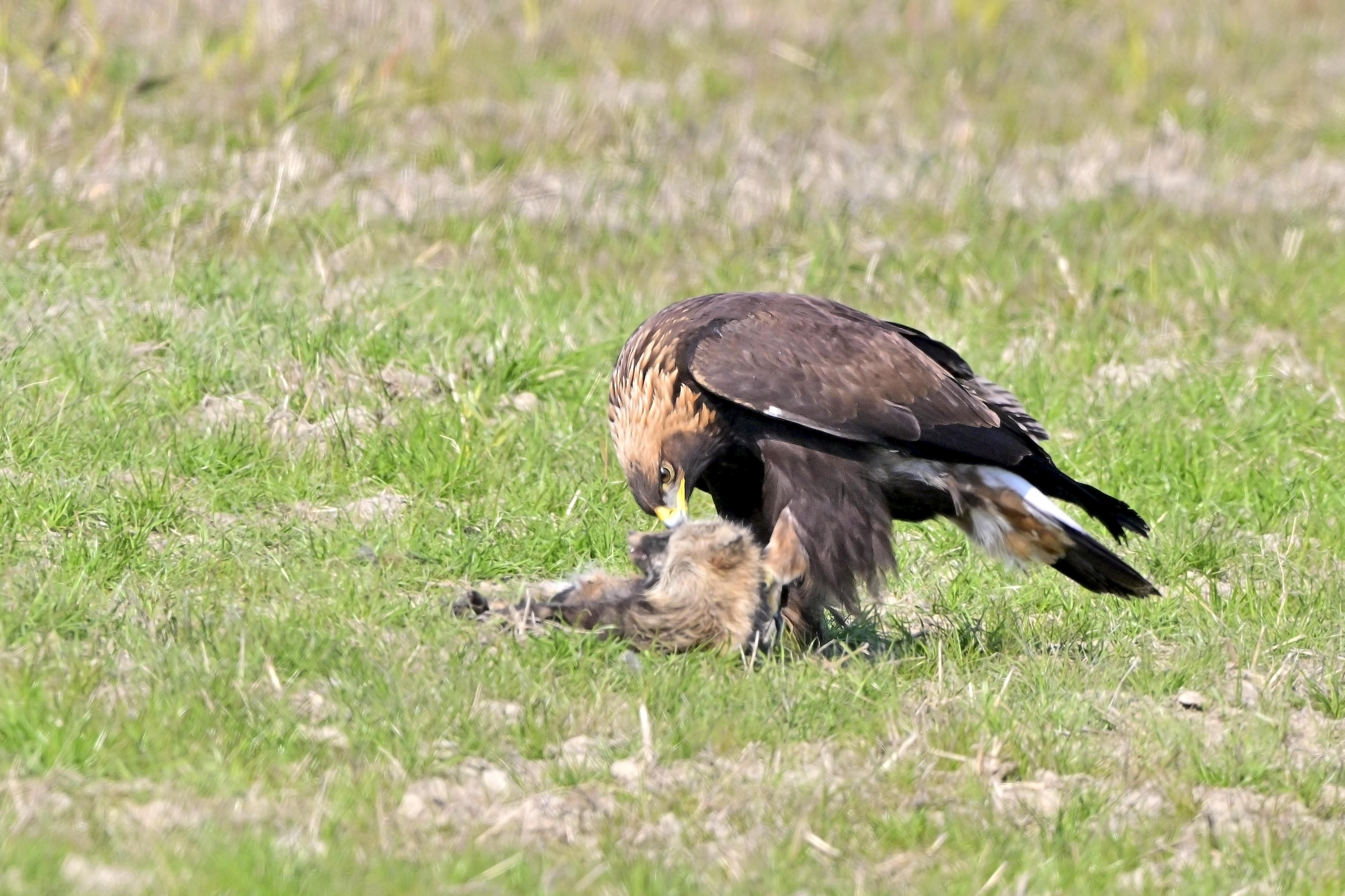 불안한지 결국 그 무거운 먹이를 들고 날아가다 떨어트렸다.